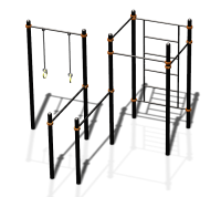 Конструкция спортивного комплекса для тренировок на улице. Представленный проект включает в себя основные элементы, на которых выполняя упражнения включаются все мышцы. Тип конструкции – сборно-разборный, поэтому она доставляется на объект отдельными элементами и монтируется на месте.